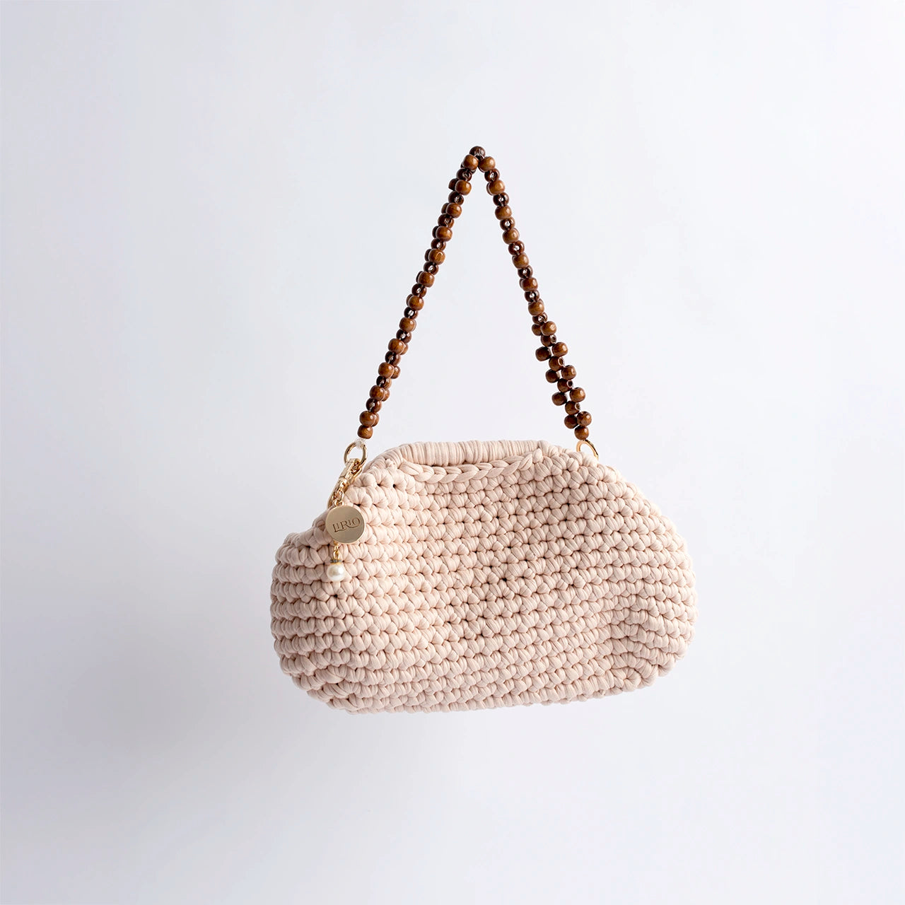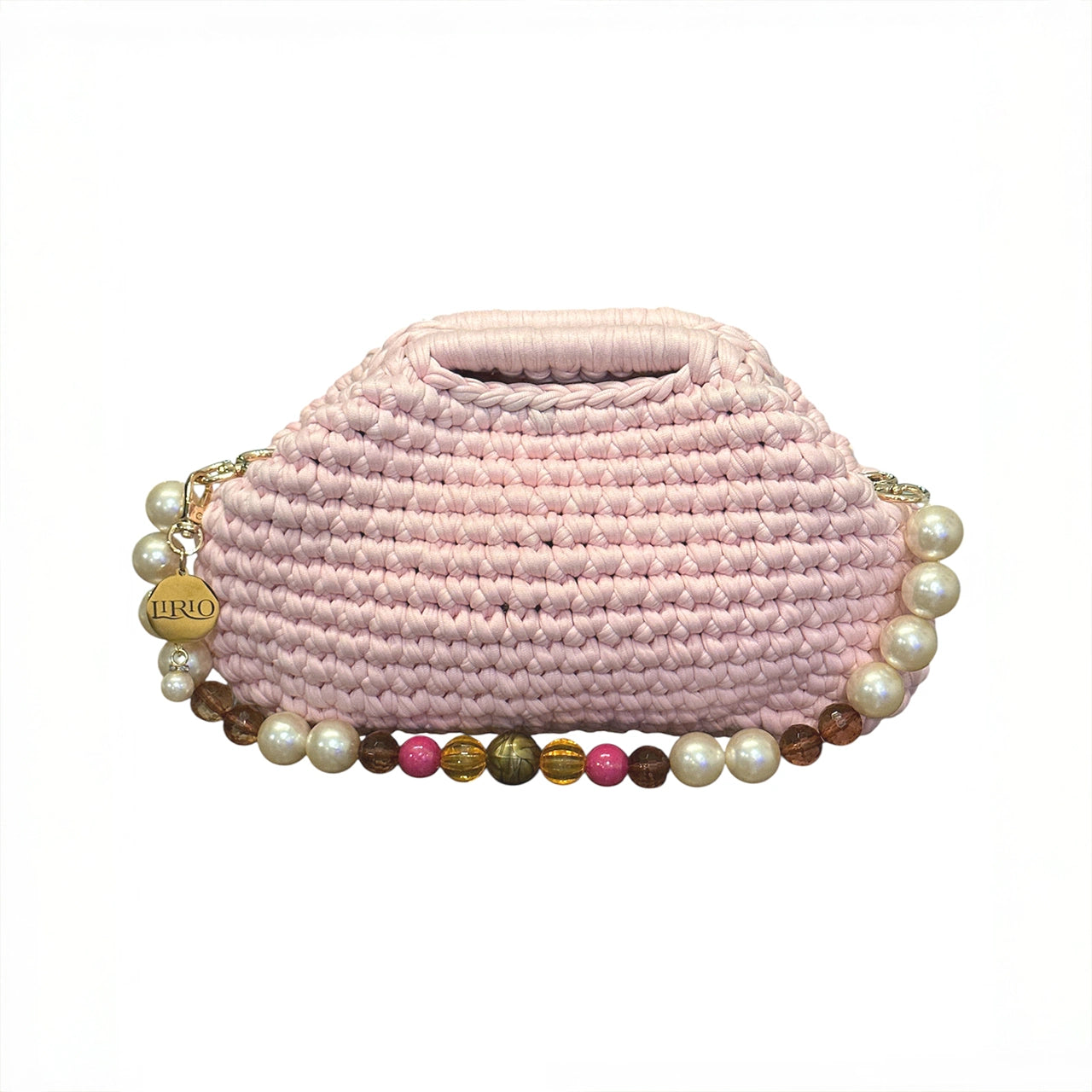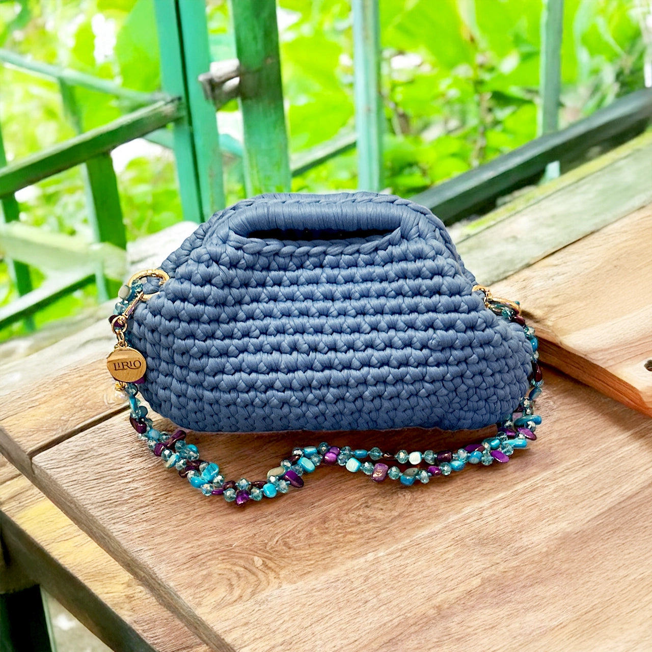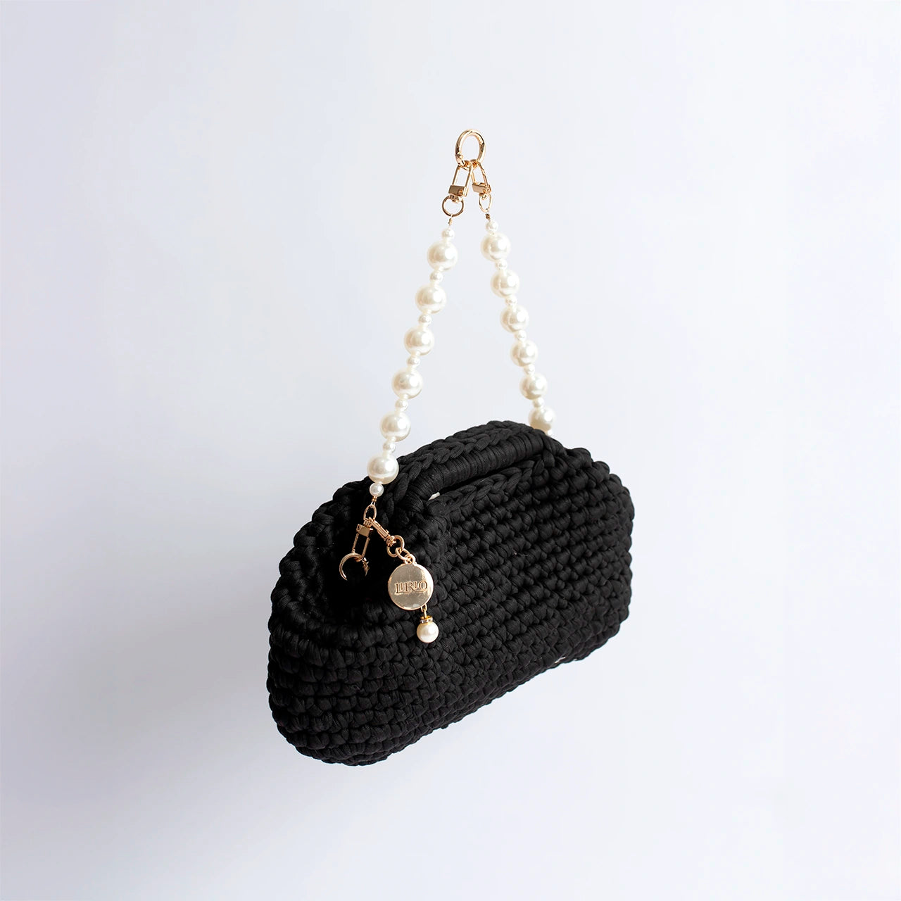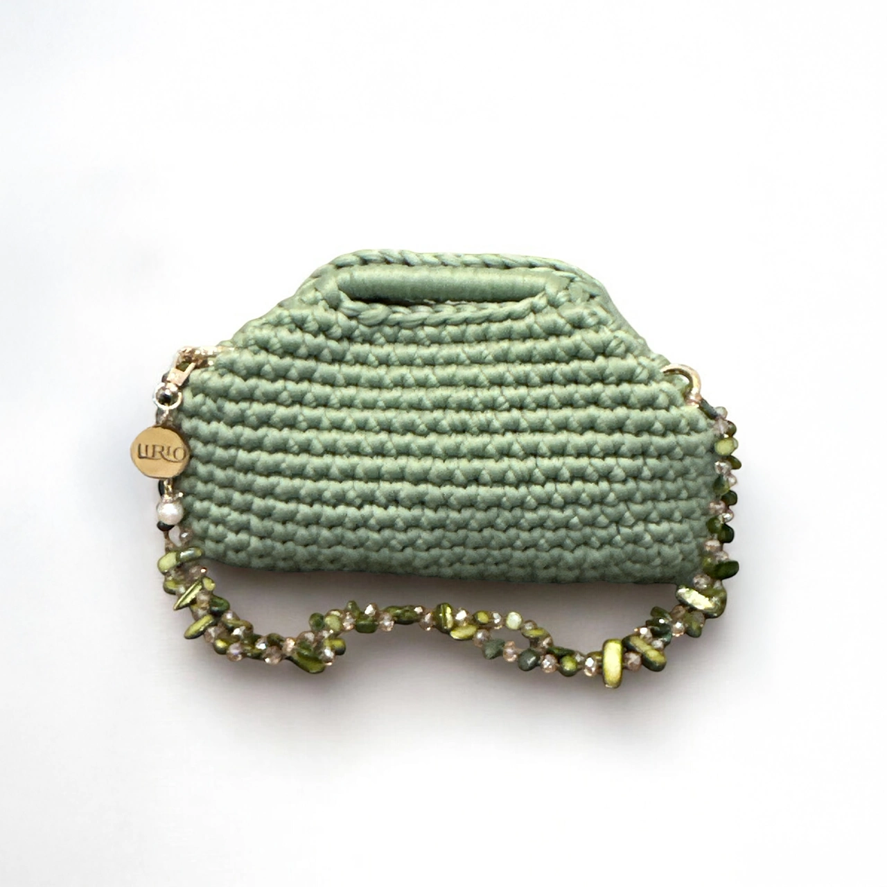 The Alissa is a hand-crocheted mini bag with wolf's mouth opening featuring elegant gold or beaded chain options. Available in a variety of colors, it's the perfect mix of playful and polished for day-to-night wear.