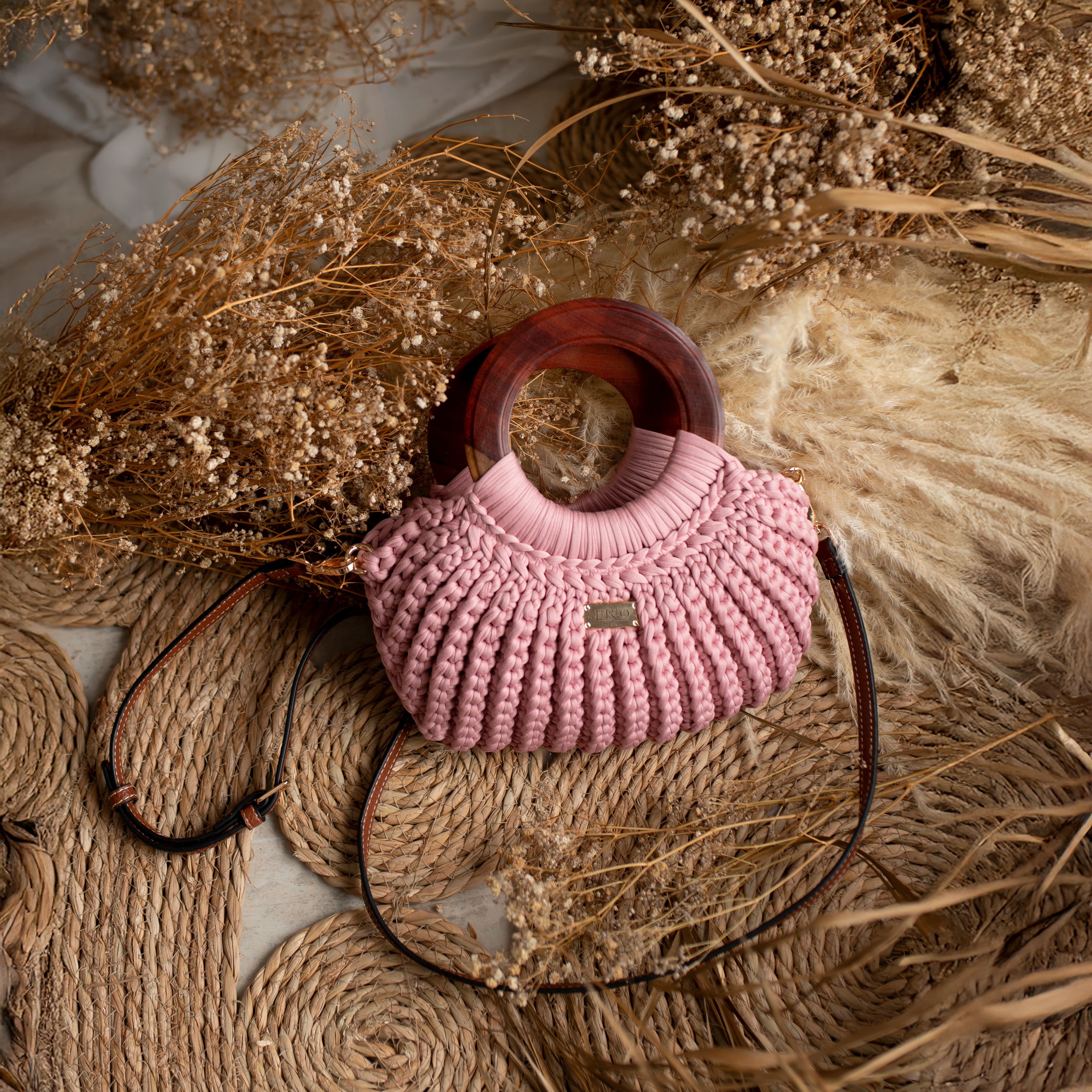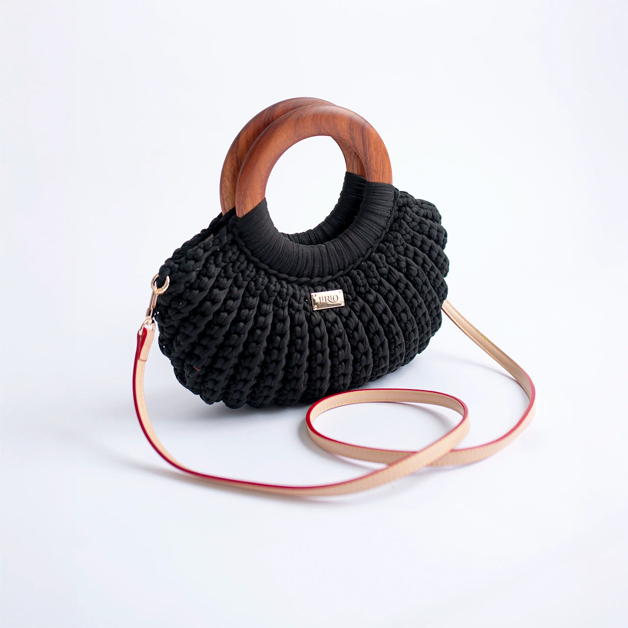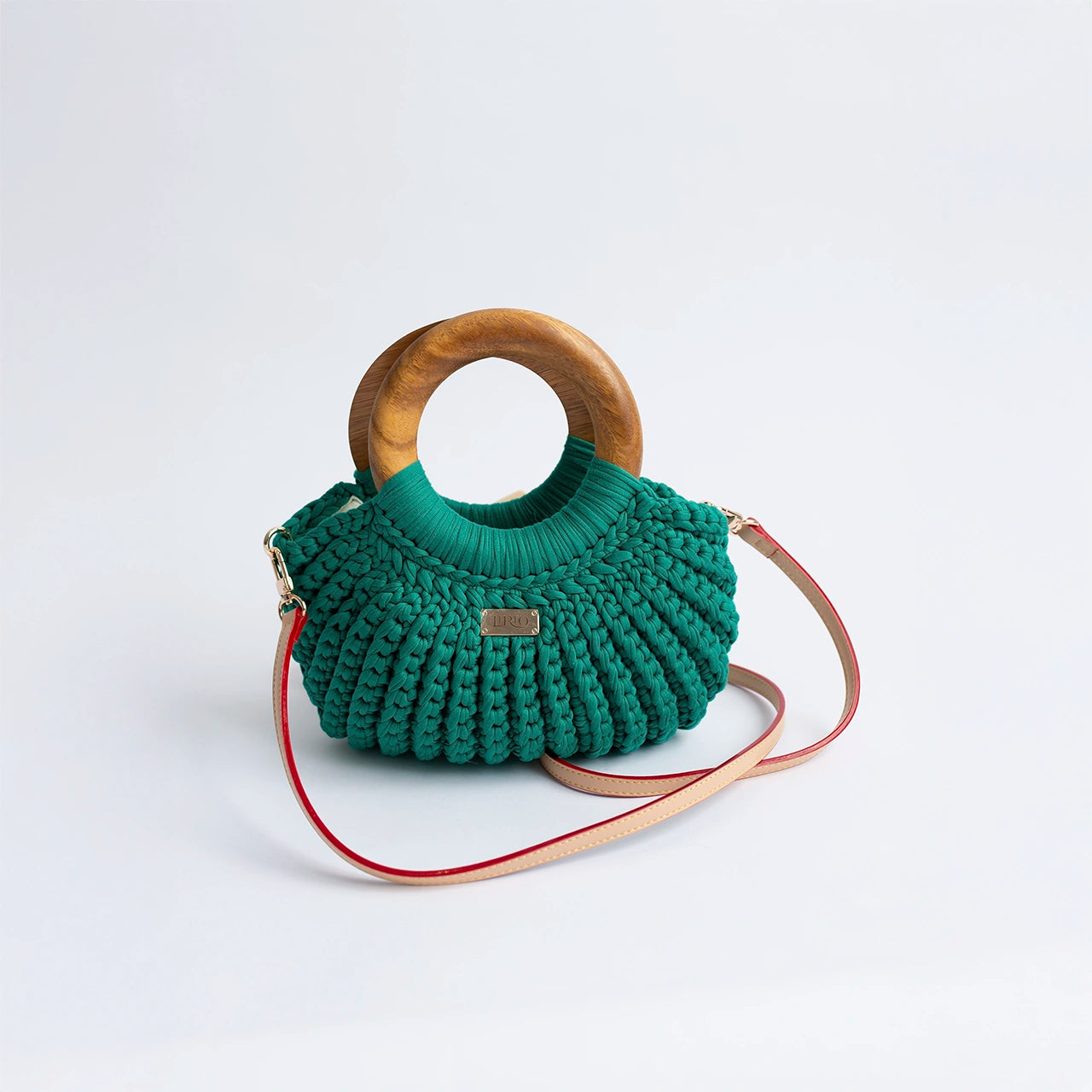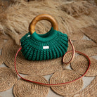 The Mini Camila is a hand-crocheted crossbody bag featuring a bold wooden handle and soft, textured body. Compact yet eye-catching, it’s perfect for carrying essentials with style.