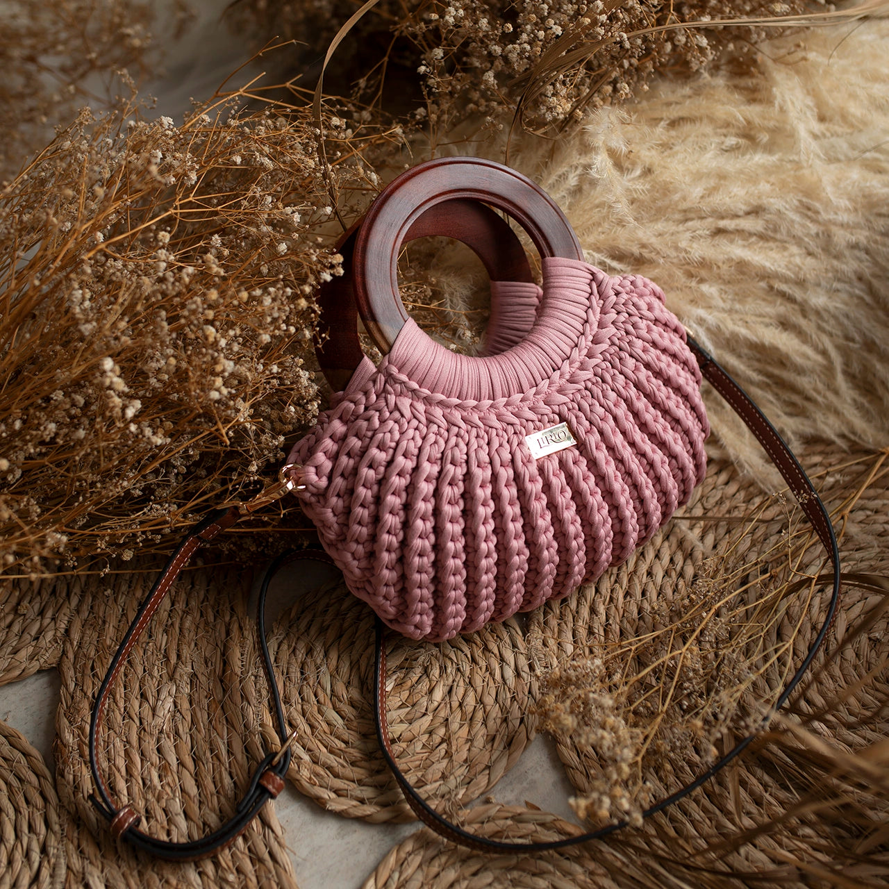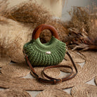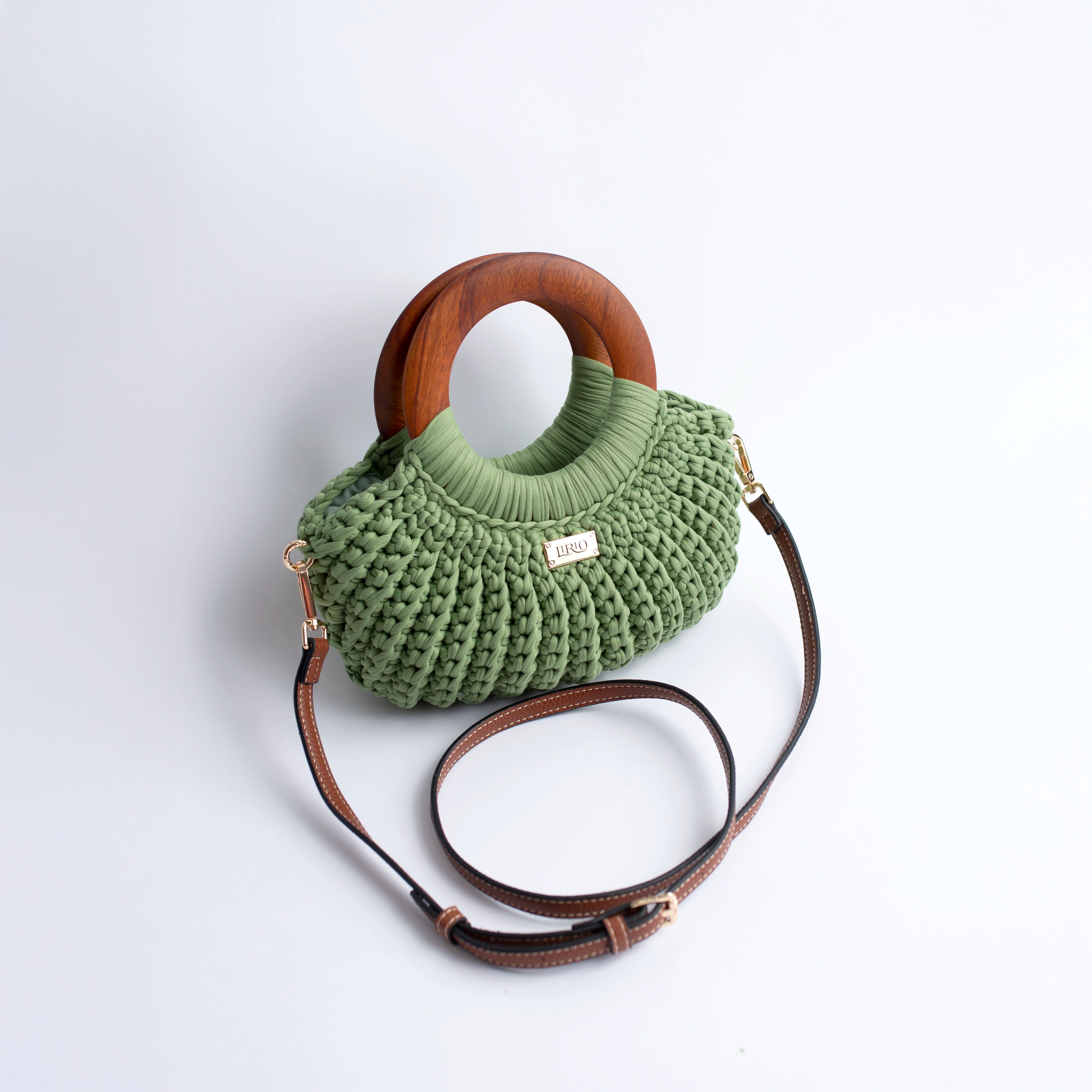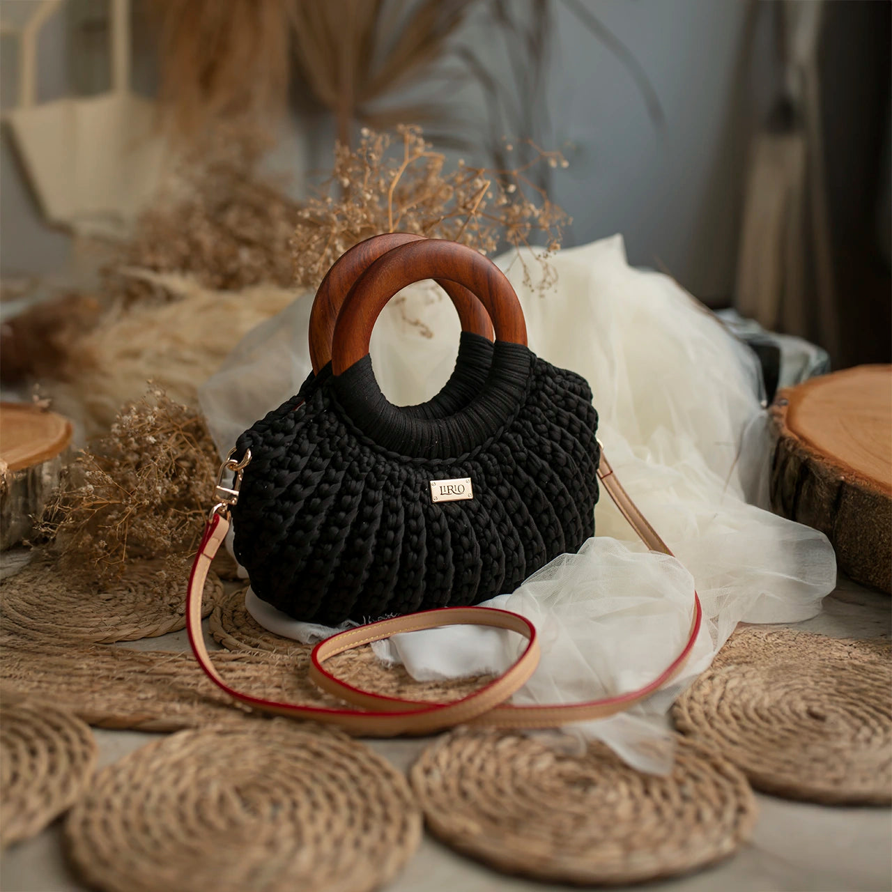 The Mini Camila is a hand-crocheted crossbody bag featuring a bold wooden handle and soft, textured body. Compact yet eye-catching, it’s perfect for carrying essentials with style.