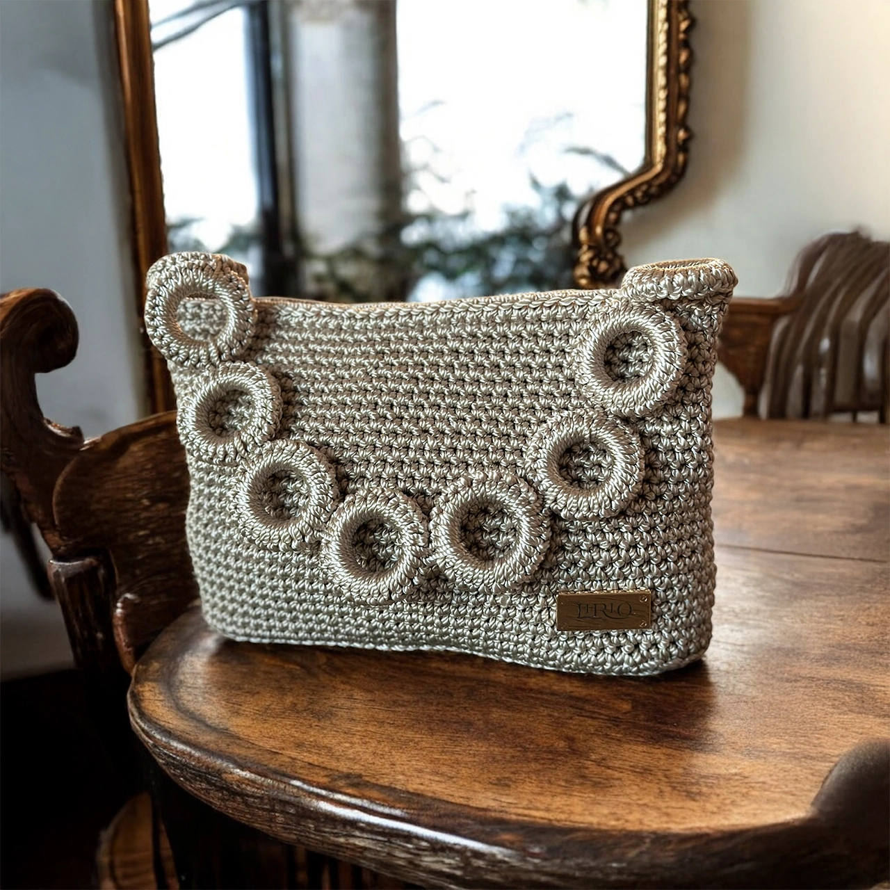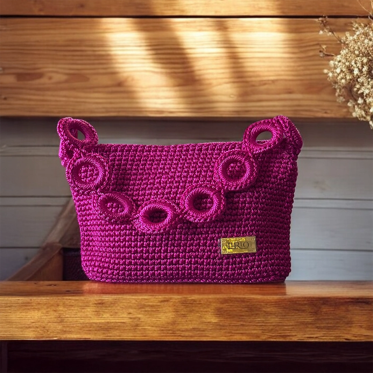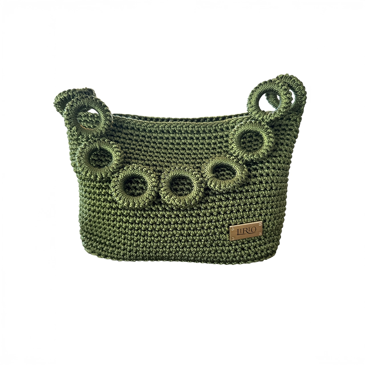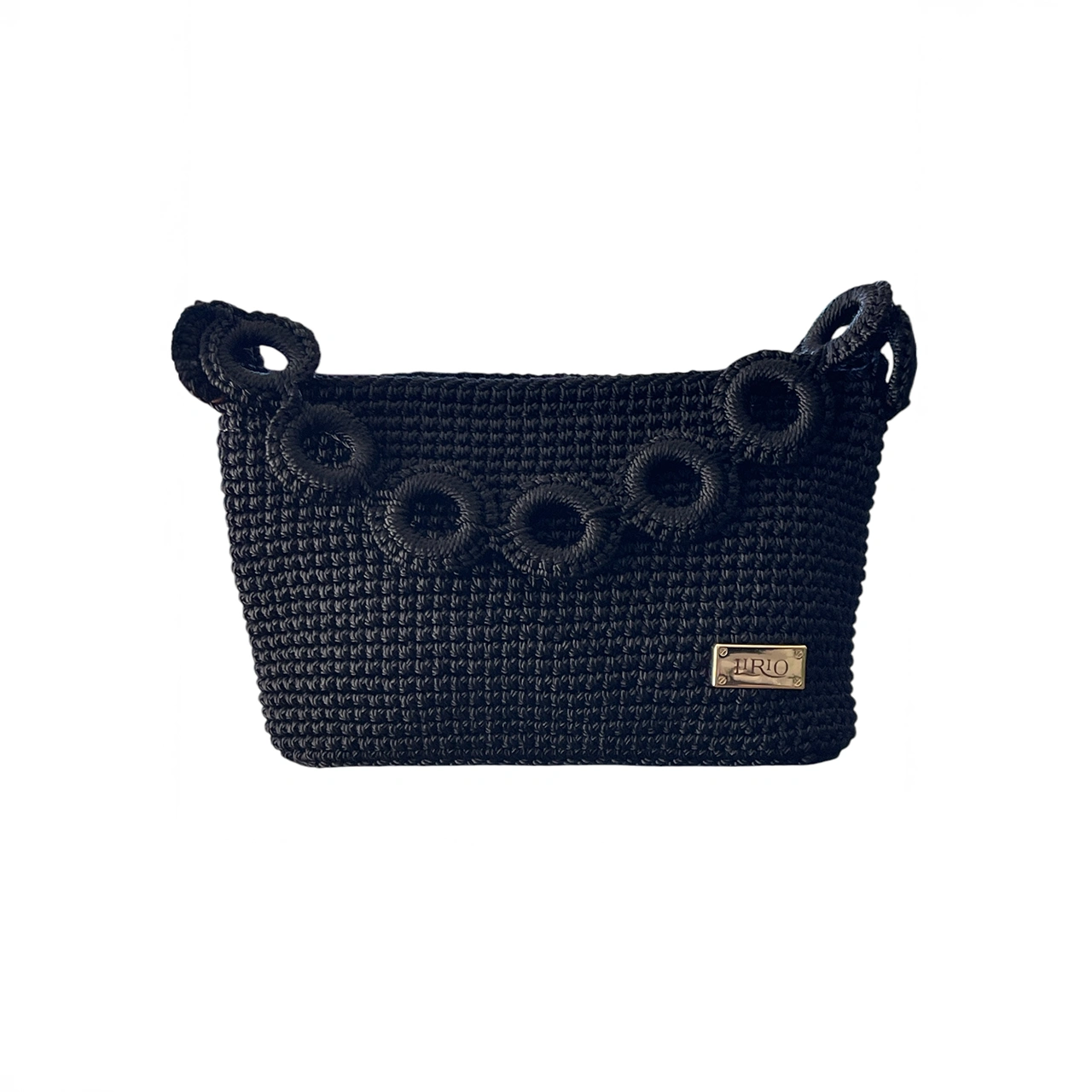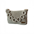 Handwoven with a shiny thread and a tight weave, this medium-sized shoulder bag features a row of statement ring accents on the handle. The simple silhouette makes it versatile for everyday wear, while the bold details ensure it stands out in any outfit.
