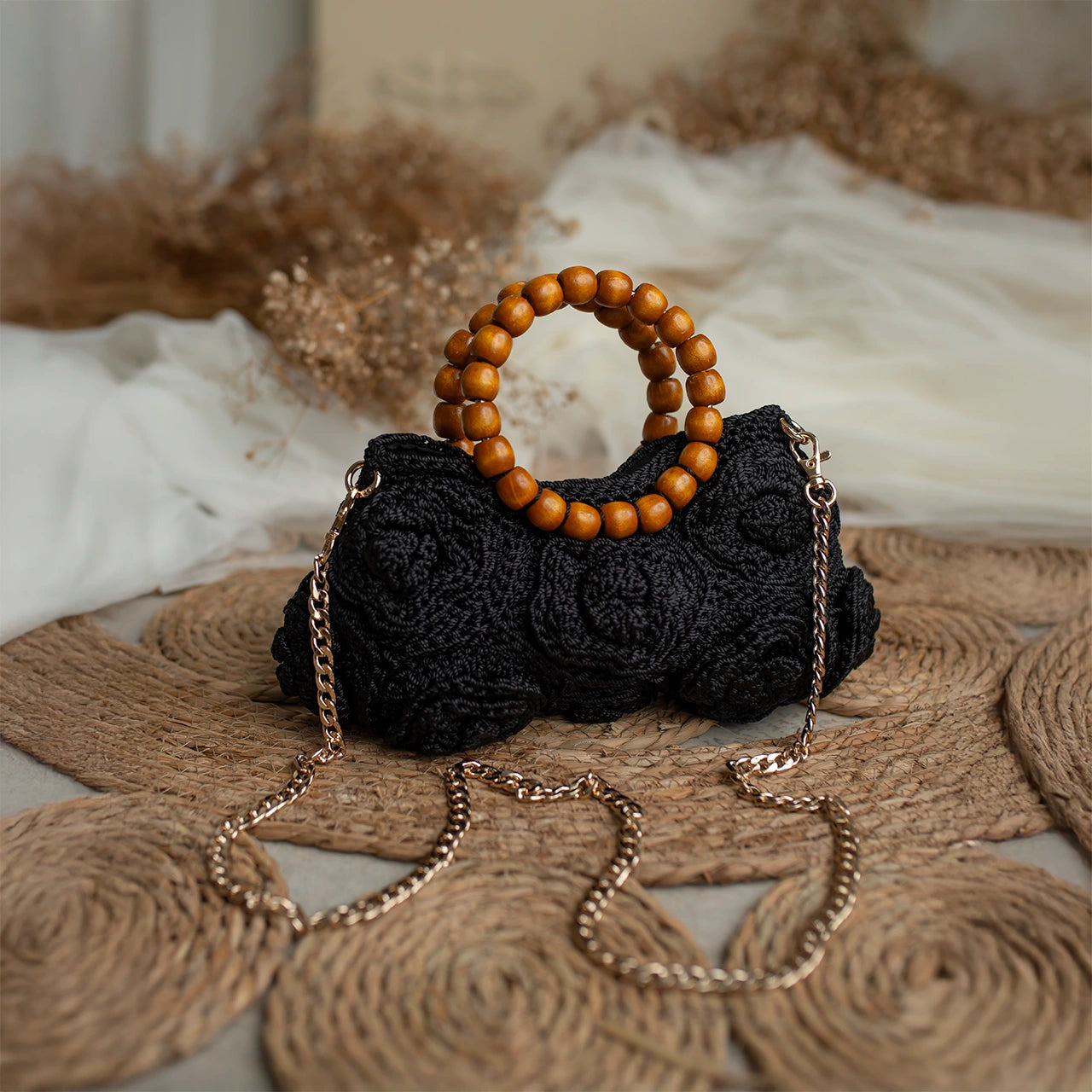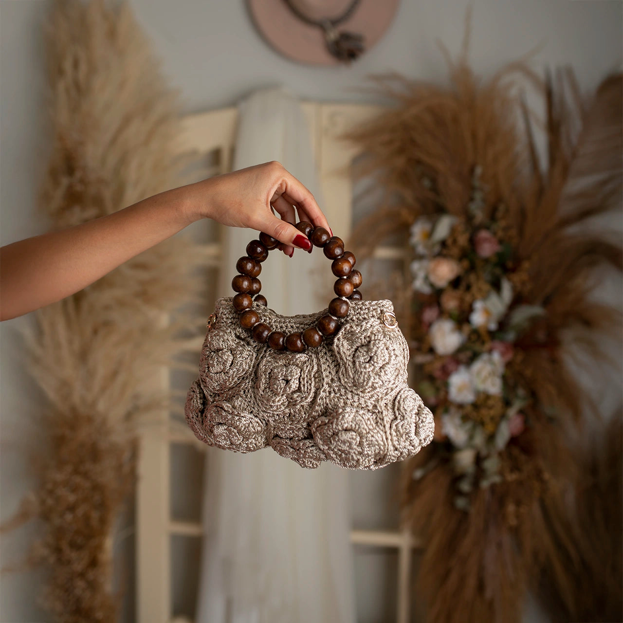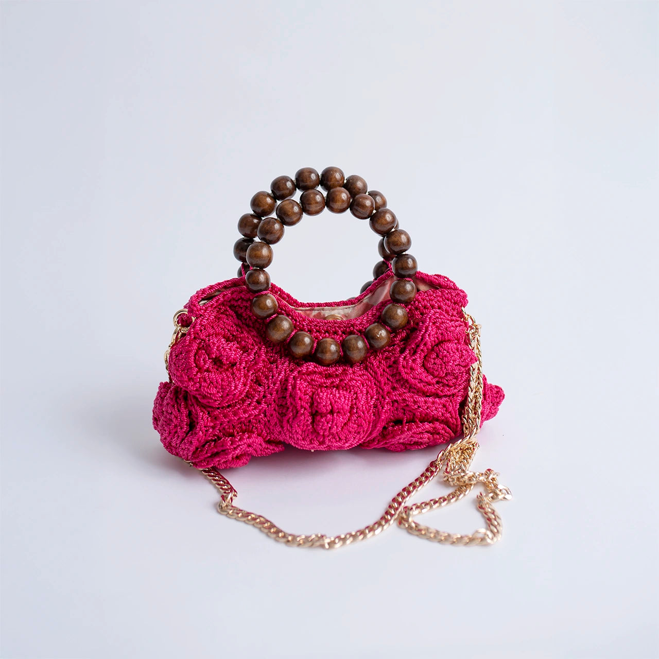 A compact take on our best-selling Rosella, the Rosella Petite keeps the signature floral texture while offering a smaller, lightweight design perfect for day-to-night styling. Hand-crocheted with intricate rose detailing, each bag features a round handle made from either pearl or wooden beads and includes a detachable chain strap for versatile wear—carry it by hand or sling it over your shoulder.