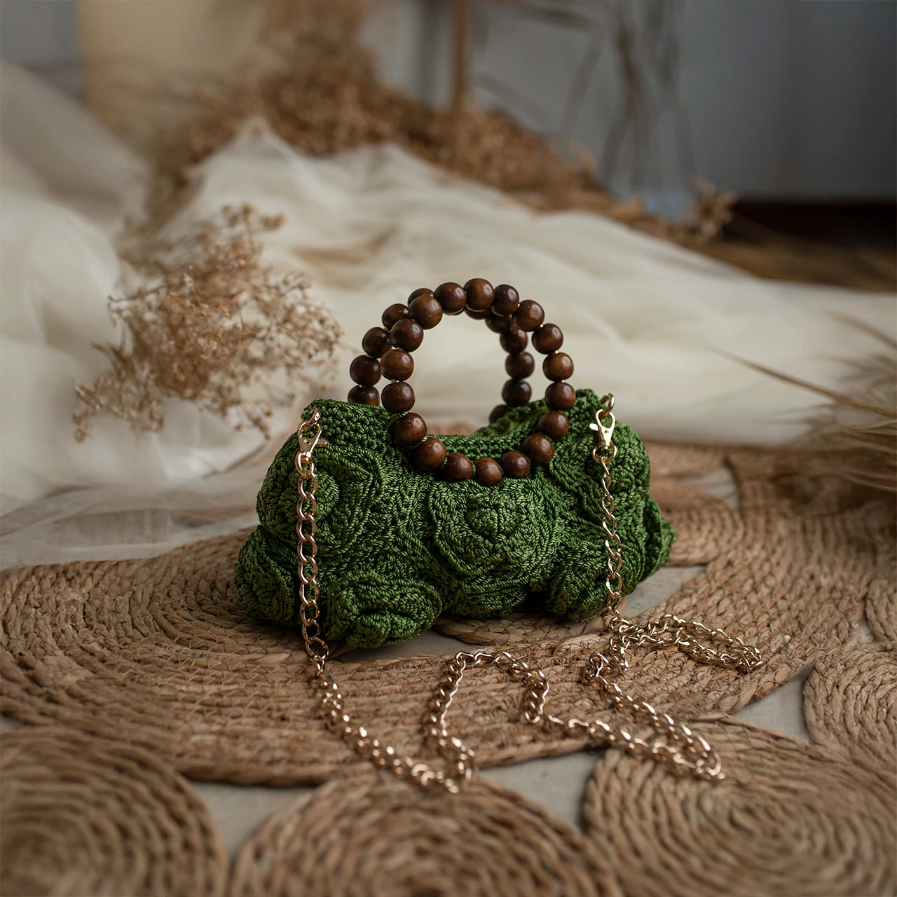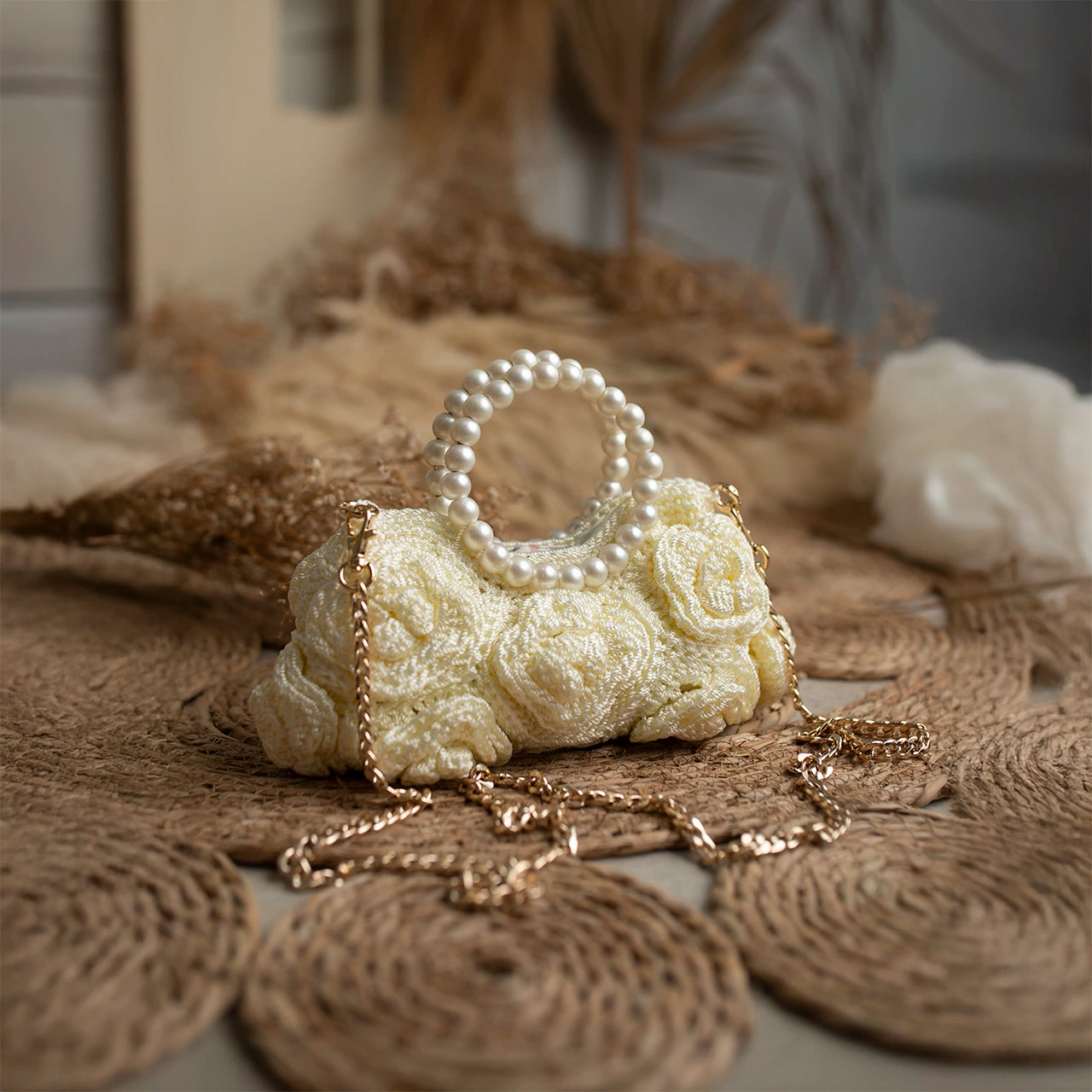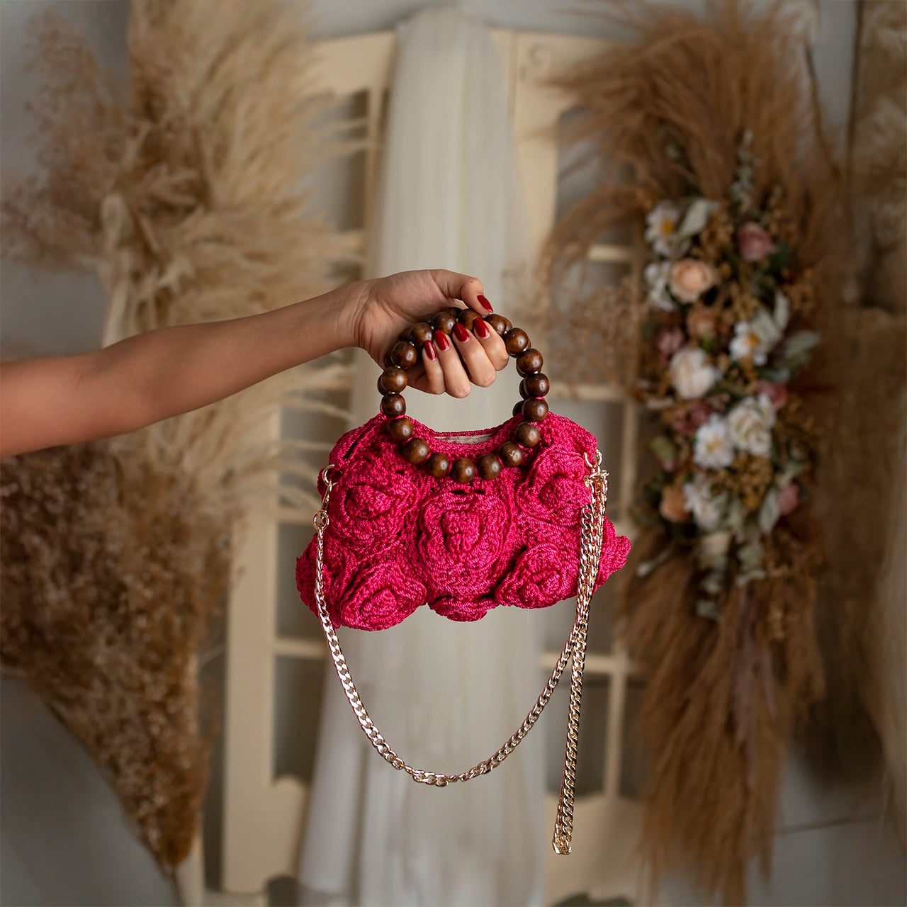 A compact take on our best-selling Rosella, the Rosella Petite keeps the signature floral texture while offering a smaller, lightweight design perfect for day-to-night styling. Hand-crocheted with intricate rose detailing, each bag features a round handle made from either pearl or wooden beads and includes a detachable chain strap for versatile wear—carry it by hand or sling it over your shoulder.