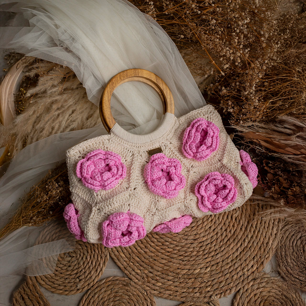 Presentamos el bolso de mano Rosella Tote 🌸 hecho a mano con un hermoso patrón de rosas en 3D. Elaborado con amor y precisión, este elegante bolso cuenta con asas de madera resistentes y un forro de lino suave, que ofrecen estilo y practicidad. Perfecto para cualquier ocasión, el bolso de mano Rosella es tu accesorio ideal para darle un toque de sofisticación.