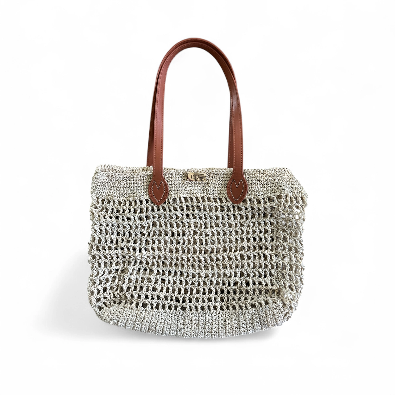 Available with brown or black leather handles, the Selva Tote offers a versatile look that pairs effortlessly with casual and relaxed styles.