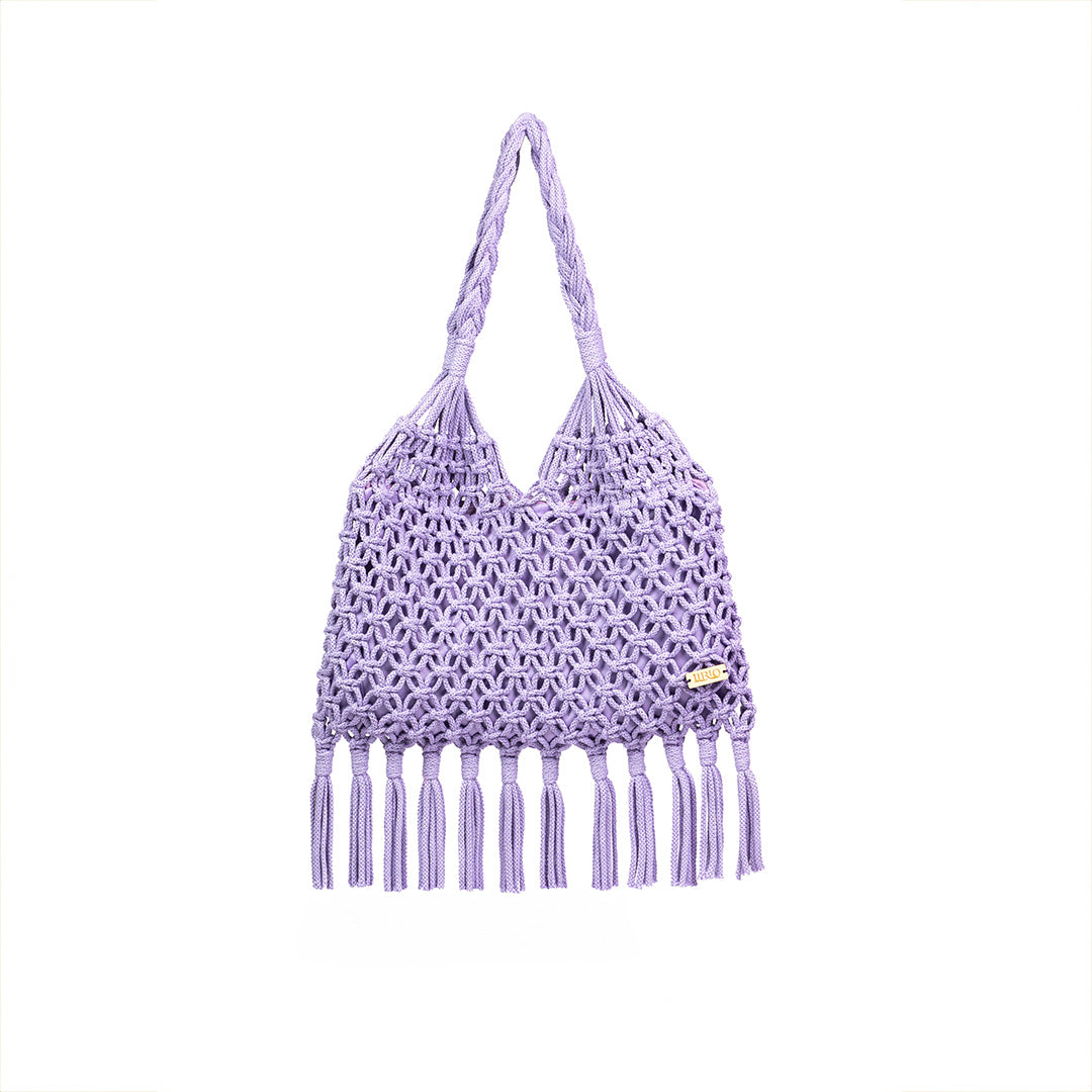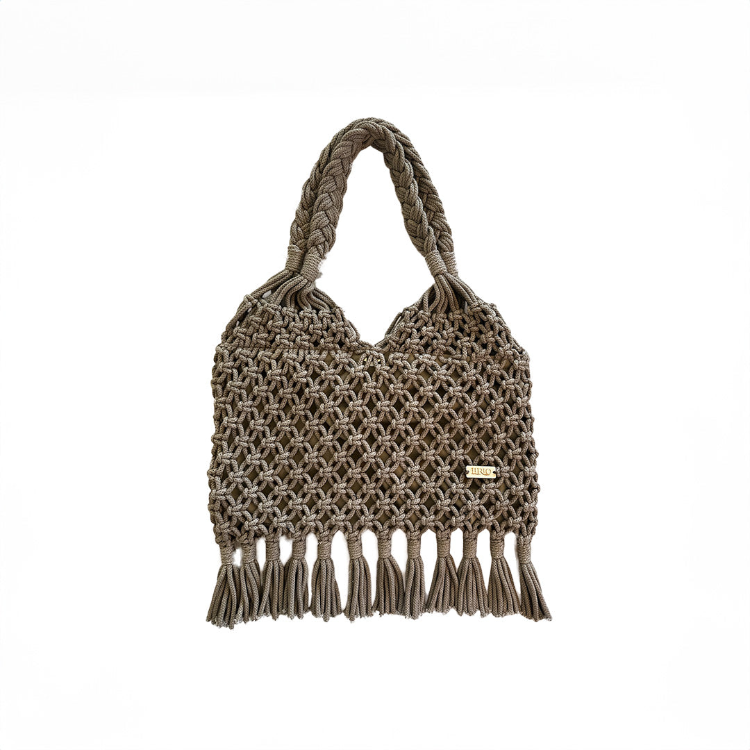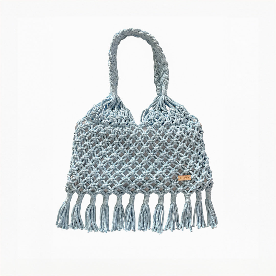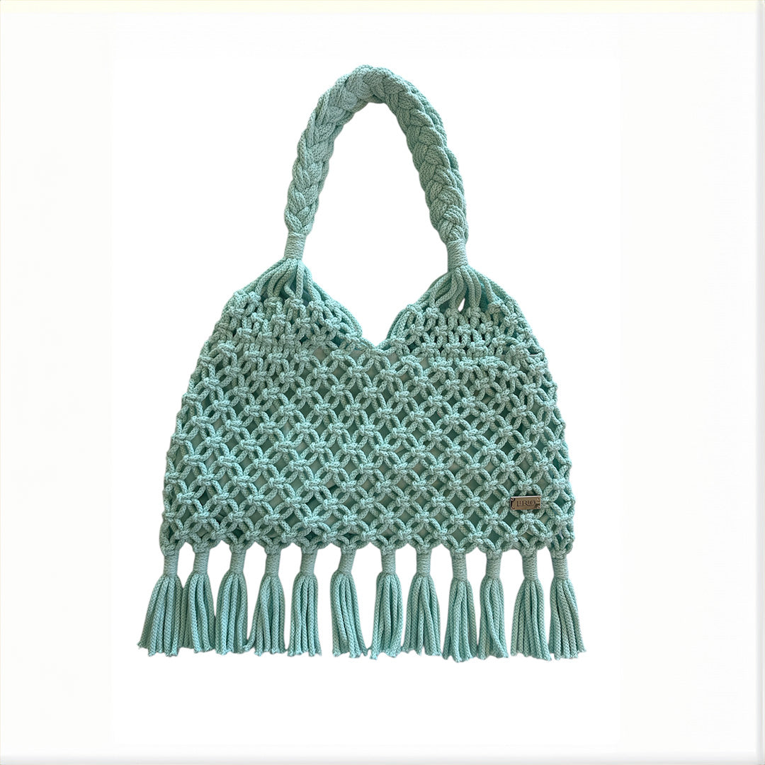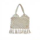 The Clara bag is a handwoven macramé handbag designed with an open diamond knot pattern and tassel details along the bottom edge. Its braided handles provide a comfortable grip, while the lightweight structure makes it easy to carry for casual outings, markets, or beach days. The handcrafted texture gives it a relaxed yet stylish look that pairs effortlessly with warm-weather outfits.